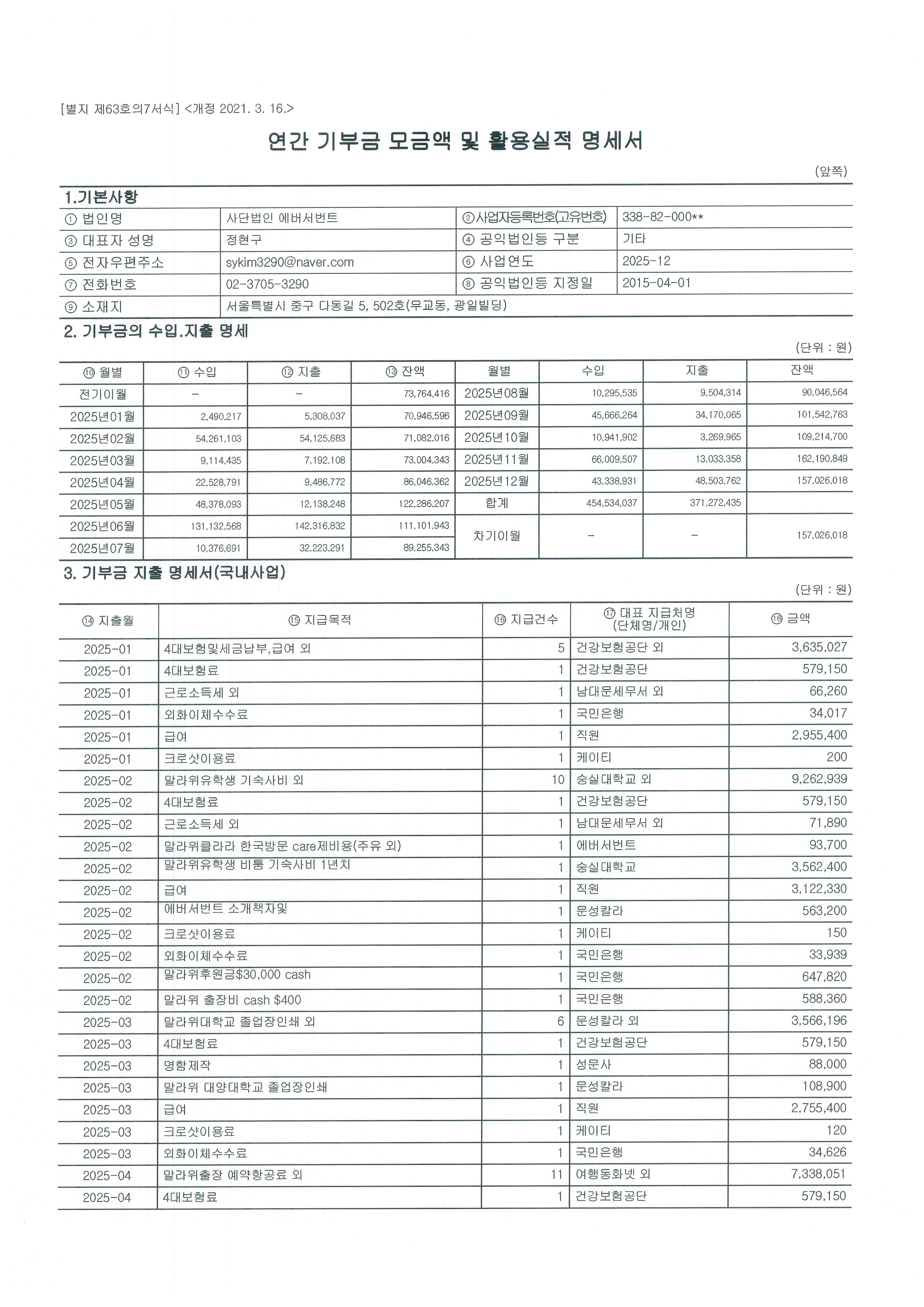 ¿¬°£±âºÎ±Ý ¸ð±Ý¾× ¹× Ȱ¿ë½ÇÀû¸í¼¼¼(2025³âµµ)